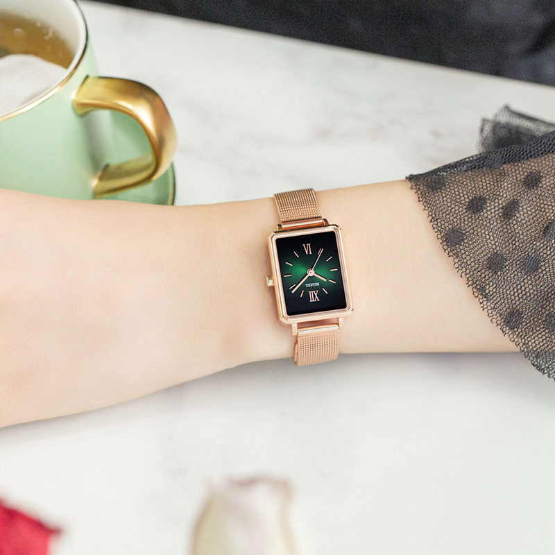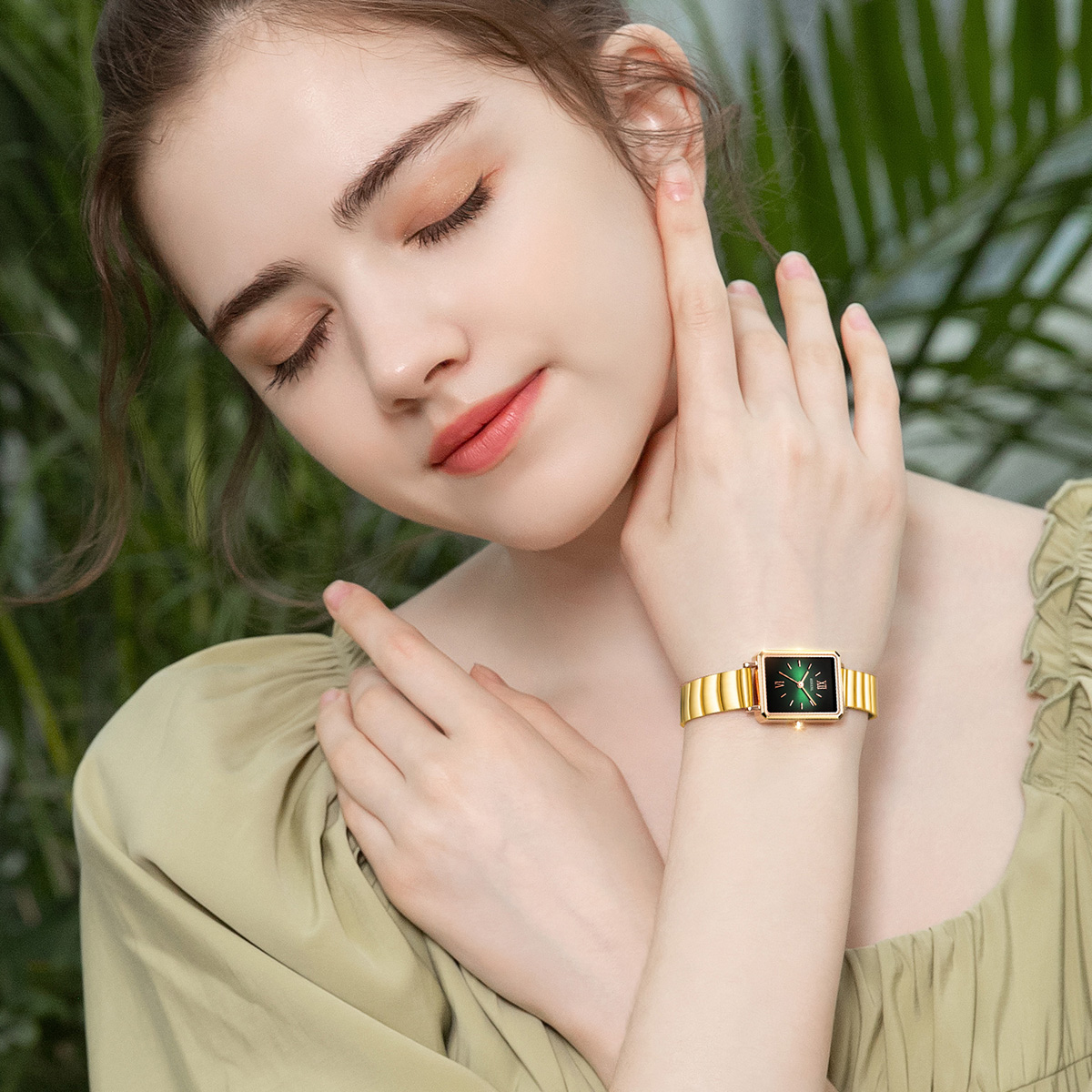 SCENREY·秘境系列-極光小煙熏—時光秘境系列是簡約風(fēng)格的典范,將簡單與精致的特點相互交融,締造出珍貴、細膩、充滿女性魅力,又時而有些神秘的珠寶腕表。萃取極光熒綠,以綻放雋永奪目光彩的煙熏綠為表盤主色調(diào),充滿了絢麗神秘色彩。漸變色系,清麗脫俗,卻又不乏個性,如女性眉眼靈動的煙熏妝容,集柔美神秘清新于一身。