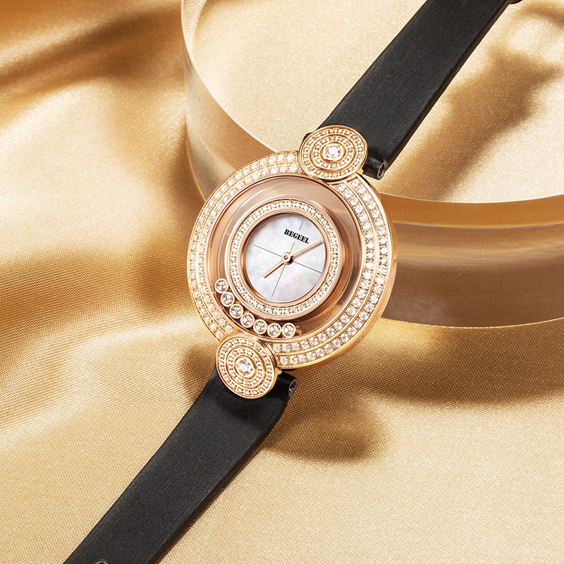 以簡約的線條展示清麗典雅的設(shè)計風格,象征繆斯女神的自信與光芒。表盤采用了特有的“鏤空”設(shè)計,較小的同心圓為珍珠母貝質(zhì)地,呈圓滿的球型。兩個同心圓環(huán)皆為拋光打造。 兩個圓環(huán)之間、藍寶石水晶鏡面的無形護佑下,七顆靈動水晶鉆如懸空漂浮一般,在流光溢彩的閃爍光華中無盡地回旋、轉(zhuǎn)動。表殼的頂端與底端各綴有一粒單顆水晶鉆,使表殼到豐盈的黑、白色表帶之間的過渡呈現(xiàn)出簡潔、雋永的顯著風格。