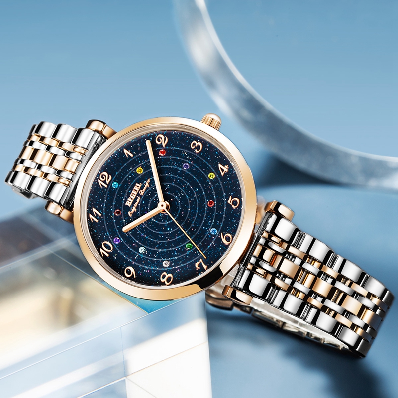 以深邃夢幻的宇宙作為靈感,綠松鋯, 黃玉鋯,碧璽鋯,藍(lán)寶鋯,橄欖鋯,紅寶鋯,月光鋯,翡翠鋯, 白鋯,海藍(lán)鋯,紫晶鋯,石榴鋯等十二顆鋯石精巧鑲嵌于表盤之上,代表十二個月份幸福的生辰石。當(dāng)陽光透過細(xì)膩紋理映射在斑斕多姿的鋯石上,閃爍起幸運(yùn)的光芒,它將成為你永恒的生辰守護(hù)。