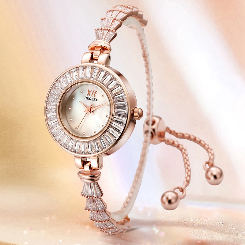 表殼:電鍍玫瑰金 鑲30顆水晶鉆
